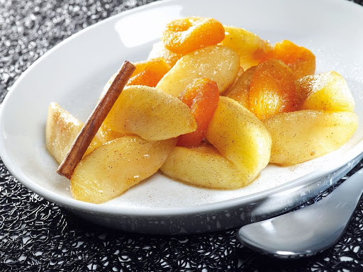 hot cooked apple wedges with a sprinkling of cinnamon sugar. Serve with