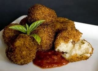 Mash the ricotta (better if passed through a sieve). In a medium bowl, combine the ricotta, flour, parmesan, salt, pepper, and eggs. Using a tablespoon, spoon the mixture to form balls. Roll each ball in bread crumbs until well coated. Heat olive oil in large frying pan. When hot cook balls in oil turning frequently until golden. Drain on paper towel and serve.