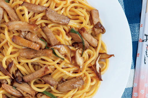 Toss pork mixture with the spaghetti and6 to 8 servings