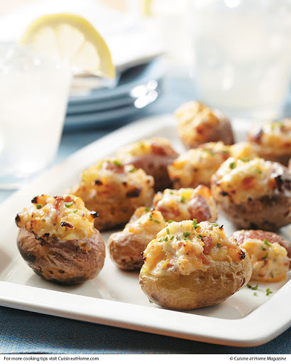 Combine scooped out flesh with sour cream, ranch powder, Cheddar, and bacon; season with pepper.