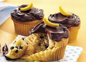 Go bananas for fun, easy-mix cupcakes partnered with chocolate chips and chocolate frosting.