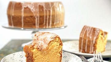 For the Vanilla Glaze: whisk together powdered sugar, milk, vanilla extract and salt in a medium bowl. Pour glaze over the top of the warm cake. Cover and let the icing soak into the cake for 15-20 minutes.