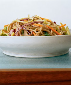 - 8 ounces soba (buckwheat) noodles, whole wheat spaghetti, or fettuccine