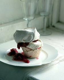 Meringue Cupcakes with Stewed Rhubarb and Raisins