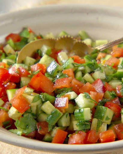 Cut cucumber lengthwise in 8 thin slices, then into tiny cubes. Place in a medium mixing bowl.