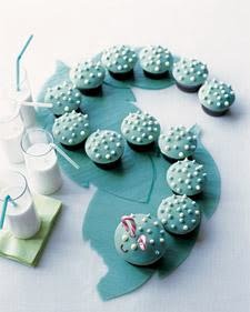 This oh-so-cute caterpillar, made by arranging fondant-covered cupcakes in a curved line, makes a memorable arrangement for a baby's first birthday party.