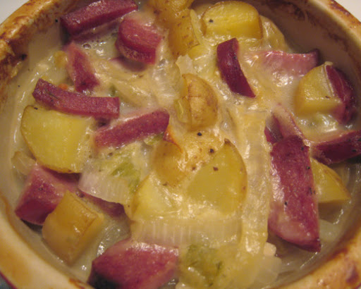 (if the potatoes are extra large, I use a 9x11 in casserole dish.) Place casserole on a baking sheet and bake in the preheated oven for 90 minutes or until potatoes are tender.