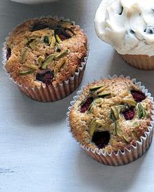 Divide batter among muffin cups, filling each halfway. Sprinkle with raspberries and slivered or chopped pistachios. Bake until firm and pulling away from liners, about 28 minutes. Let cool in tins on wire racks. Cupcakes will keep, covered, for up to 2 days.