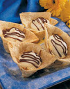 Carefully remove cups from pan. Pipe or spoon about 3 tablespoons filling into each cup. Drizzle or pipe with melted chocolate. Refrigerate for 5 minutes or until chocolate is set. Store in the refrigerator. Yield: 20 servings.