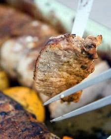I just love the flavors of orange and cumin with pork. The method here is a little different than you might expect -- the loin is grilled briefly to seal in the juices, then transferred to a grill-proof pan and cooked with citrus juices. Oh, talk about moist! The pan juices make for a simple but intensely flavored "jus" for serving with the pork.