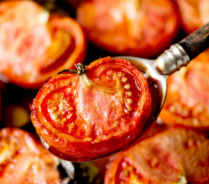 Heat oven to 250 degrees. If using larger tomatoes, such as beefsteak or plum tomatoes, slice them in half; if using cherry tomatoes, leave them whole.