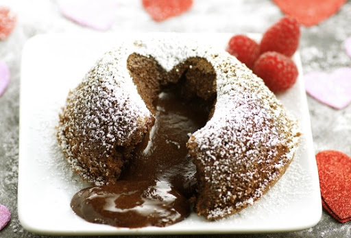 Coat top and cups of muffin tin with butter and dust with cocoa powder, shaking off excess.