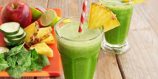 cucumber, apple, pineapple, baby kale, mint and lime through juicer. If you don’t have a juicer simply combine all ingredients in an emulsifier blender with 1/2-cup water or your favorite juice. Cover; blend until smooth.
