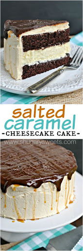 Once cooled. Spread over top of chilled cake. Drizzle with remaining 2 Tbsp of caramel sauce and sprinkle with a pinch of kosher salt. Refrigerate cake until ready to serve!