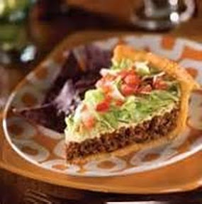 Brown hamburger. Add taco seasoning mix and water. Add sliced olives. Simmer 5-10 mins. Make crust with Pillsbury rolls. Crush Fritos; sprinkle over crust. Put meat mixture over Fritos. Speard sour cream over meat. Spread cheddar cheese over sour cream. Spread crushed Fritos over top. Bake at 350 for 30 mins.