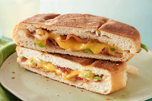 Fill rolls with ham, vegetables, cheese and bacon. Cook, in batches, in same skillet 2 min. on each side or until toasted on both sides.