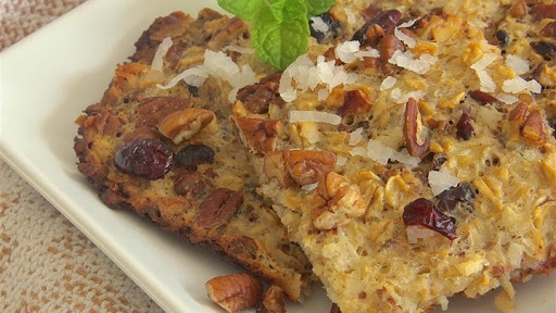 Mix oatmeal, baking powder, and sugar together in a large bowl. Beat milk and egg together in a separate bowl; add to oatmeal mixture and stir to incorporate. Stir cranberries, coconut, and nuts into the oatmeal mixture; spread into the prepared baking dish.