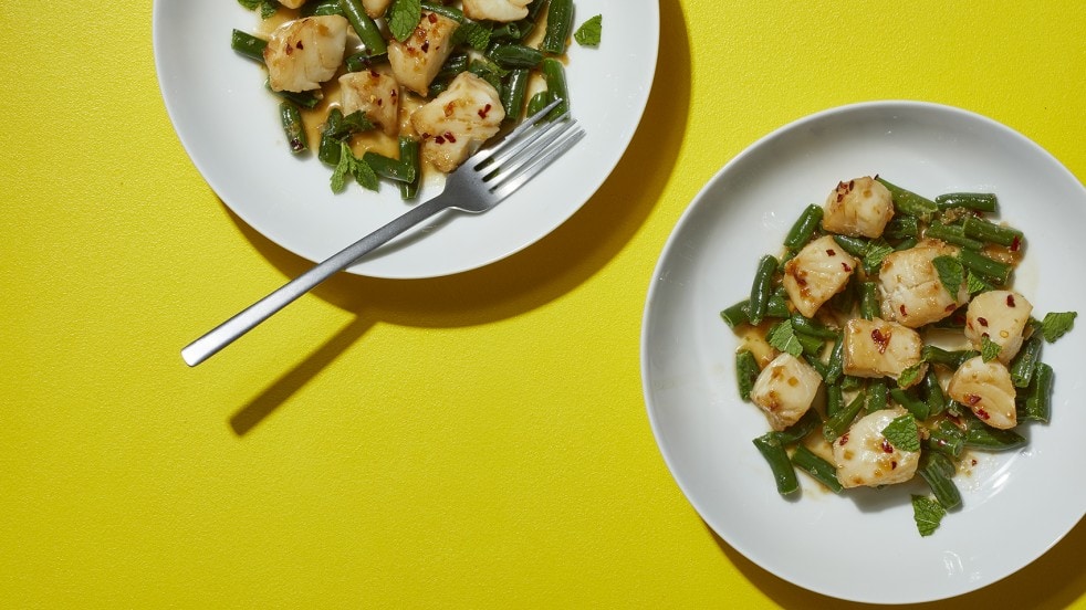 Drain the fish and pat dry, then cut it into chunks. Heat the remaining tablespoon of oil in a nonstick skillet over medium-high heat. Add the garlic and shallot; stir for 1 minute, then add the fish sauce mixture. Cook for 1 minute, or until the sugar has dissolved, then add the fish. Cook for 4 to 6 minutes, then add the green beans. Cook until those vegetables are just heated through, then remove from the heat.