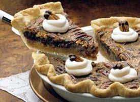 4. In large bowl, beat sugar, butter, corn syrup, bourbon, 1/2 teaspoon salt and the eggs with wire whisk or hand beater. Stir in pecans and chocolate chips. Pour into pastry-lined pie plate. Cover edge of pastry with 2- to 3-inch strip of foil to prevent excessive browning.
