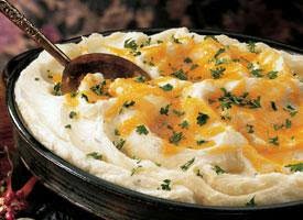3.Add sour cream, margarine, rosemary and salt. Beat vigorously until potatoes are light and fluffy. Stir in Havarti cheese. Spoon into casserole. Sprinkle with Cheddar cheese.
