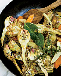 This healthy, zippy Provençal classic is known as artichokes barigoule. Served over whole-grain brown rice or buckwheat couscous, it makes a lovely vegan main course.