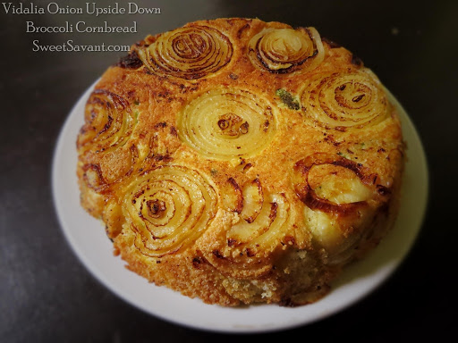 Place a plate over the pan and using oven mitts carefully flip the pan over and remove the cornbread from the pan