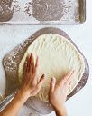 Working on a floured surface and using your fingers, press and stretch a dough ball out to a 10-inch round, working from the center toward the edge; avoid pressing on the outermost edge. Transfer the dough to a lightly floured pizza peel. Add toppings to the dough as desired, making sure to leave a 1-inch border around the edge.