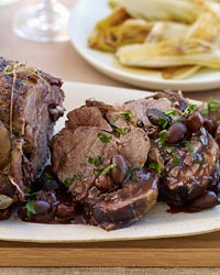 Rajat Parr braises succulent lamb shoulder in Syrah, then adds kalamata olives and dried sour cherries that he's soaked in red wine. The unusual combination makes the sauce deliciously sweet and savory.