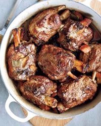 Pork shanks, which come from the front leg of the pig, can be chewy when cooked incorrectly. When prepared properly, however, they become succulent and flavorful. Tim Love thinks the best way to cook them is in a long, slow braise, as in the recipe here. Don't let the liquid boil, he warns, or it will toughen the meat.