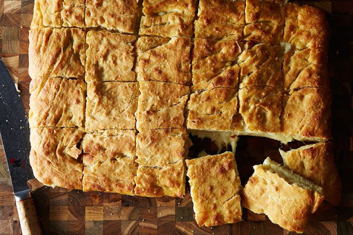 - 1 large piece of focaccia, one that will fit snugly on an 18x13-inch baking sheet
