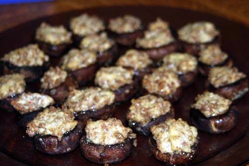 Place mushrooms in a shallow baking dish. Brush with melted butter, or spray with cooking spray.