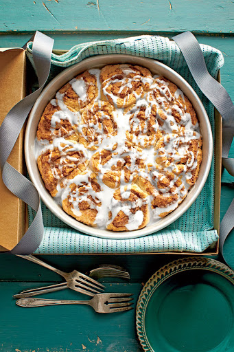 Meanwhile, prepare Creamy Glaze: Whisk together powdered sugar, vanilla extract, and heavy cream. Whisk in up to 1 tablespoon heavy cream extra, 1 teaspoon at a time, until smooth and creamy. Drizzle over rolls.