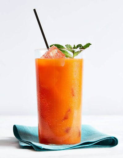 Fill an ice-cold shaker with carrot juice, orange juice, blanco tequila, lime juice, agave syrup and Tabasco. Shake well and serve on the rocks in a tall glass. Garnish each drink with a fresh mint leaf.