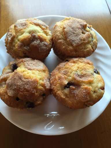 With the mixer running at low speed, add 1/2 of the flour, then 1/2 of the milk, and mix. Repeat with remaining flour and milk. Fold in the remaining 1 3/4 cups whole blueberries by hand until well mixed. In a separate small bowl, mix the remaining 2 tablespoons sugar with the cinnamon. Use an ice-cream scoop or large spoon to fill the muffin cups 3/4 full. Sprinkle the cinnamon-sugar over the muffins.