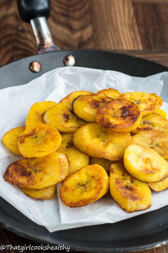 Now cut the plantain(s) into diagonal shaped discs and brush each side with some oil.