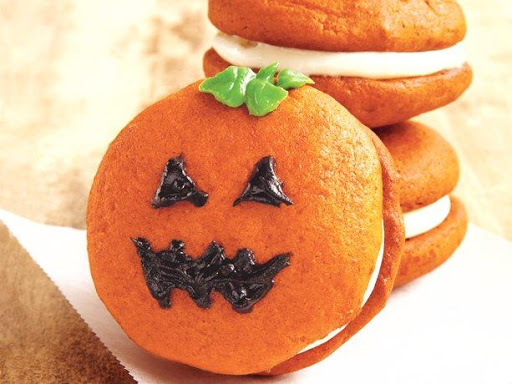 For each pie, spread about 1 generous tablespoon filling on bottom of 1 cooled cookie. Top with second cookie, bottom side down; gently press cookies together.