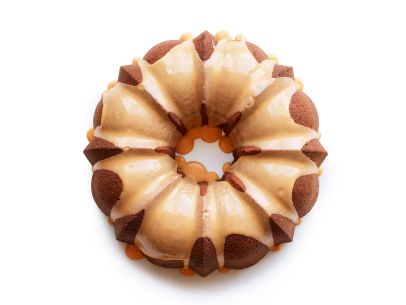 Pour the batter into the prepared Bundt pan and spread it evenly. Bake 45 minutes (be careful not to overbake). Transfer to a rack and let cool 20 minutes in the pan. Gently press down on the cake to remove any air bubbles in the tunnel (it's OK if the cake cracks a little bit), then let cool completely in the pan, 3 hours.