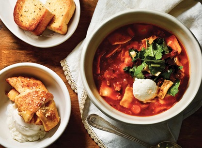 Stir pasta into soup; cook 4–5 minutes or until pasta is tender. Meanwhile, chop salad greens.