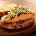 SALMON CLUB SANDWICHES WITH CUCUMBER-APPLE SLAW