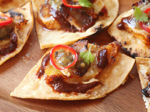 "Pineapple and Bacon Nachos With Brie and Chipotle-Orange Salsa'