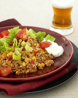 In medium skillet over medium-high heat, cook beef and chili powder until browned, stirring to separate meat. Drain.