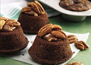 Bake 14 to 16 minutes or until toothpick inserted 1/2 inch from edge of muffin comes out clean. Cool 1 minute. Turn muffin pan upside down onto cookie sheet to remove muffins. Immediately place another caramel on bottom of each muffin. Leaving muffins upside down on cookie sheet, return to oven about 1 minute or until caramel is soft enough to add pecan halves.