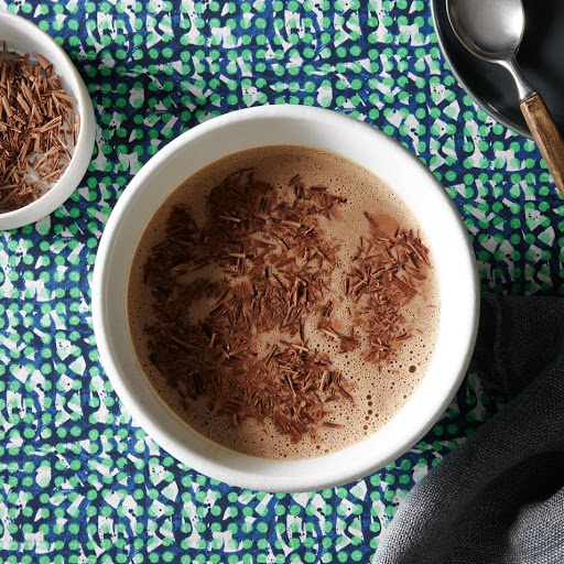 Remove from heat, and stir in sugar and chocolate until fully combined. Serve in warmed mugs immediately, or keep warm with plastic wrap or parchment paper laid on surface of liquid to prevent a skin from forming.
