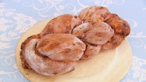 Put the dough back in the bowl and leave to rest for 1 – 1½ hours until doubled in size. Dredge a baking tray with flour. Shape the dough into a 2 strand plait and place on the baking tray.