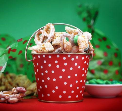 In a very large bowl, combine the chex, pretzels, peanuts and M&Ms. You might have to work in smaller batches if you can’t fit everything in one bowl with room to mix. Dump the peanuts and M&Ms in last so they don’t all sink to the bottom.