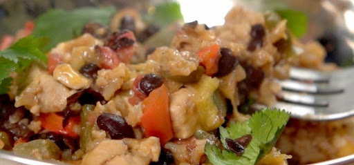 Add the Spicy Ranch Mix, black beans, fire-roasted diced tomatoes, instant brown rice and chicken stock, and mix thoroughly. Bring the mixture to a boil, then reduce the heat and cover. Allow to simmer and cook for 15 to 20 minutes, until the chicken is cooked-through and the rice is tender.