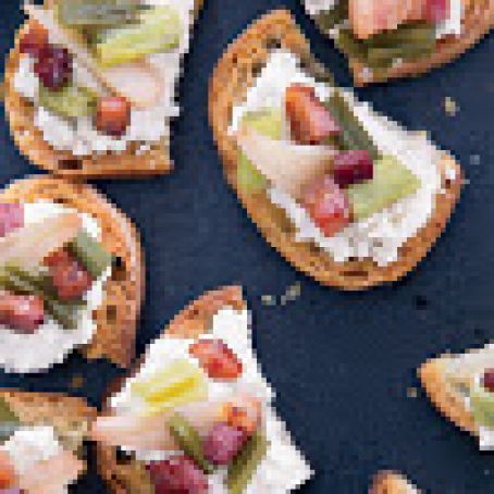 Ricotta Crostini with Pickled Ramps and Crisp Pancetta