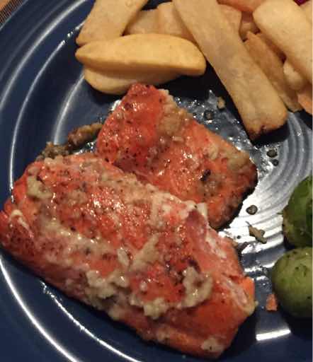 - 1 12 oz. salmon, cut into long strings- one for each person you're serving