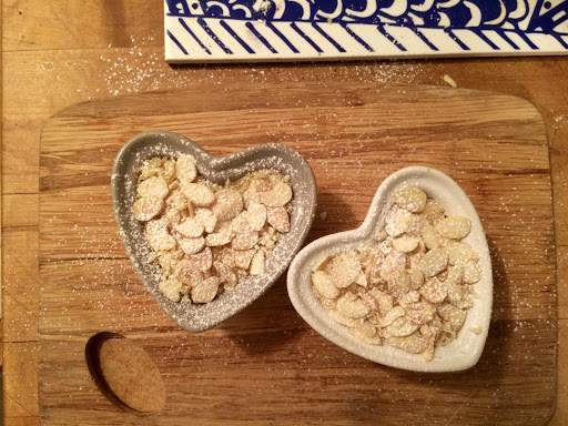 Using a rubber spatula, gently fold the egg whites into the almond mixture until no streaks remain. Scrape the batter into the prepared pan(s) and sprinkle the sliced almonds on top. Bake for about 30-35 minutes, until lightly browned and firm. Let cool completely. Transfer the cake to a serving platter, right side up. Dust with confectioners’ sugar, cut into wedges and serve with whipped cream.