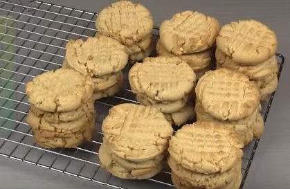 Cream shortening, peanut butter, granulated sugar, and brown sugar. Mix in egg. Add flour mixture on low speed until well mixed. Add vanilla and mix for a few minutes until fluffy.